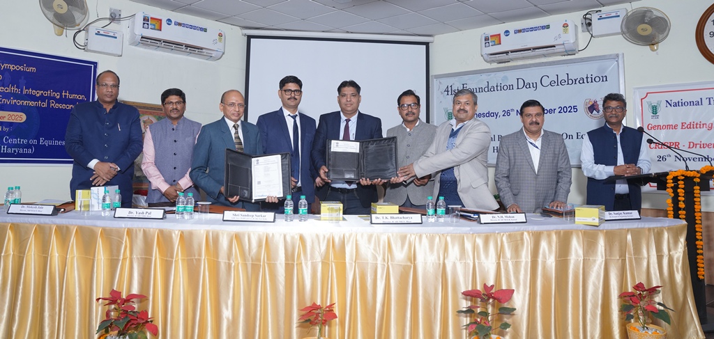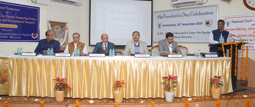 National Research Centre on Equines is a premier institute established under the aegis of Indian Council of Agricultural Research for conducting research on equine health and production. The importance of equines in India is well known. India possesses 1.17 million equines. Major population of equidae comprising donkeys, mules and ponies that provide livelihood to the rural societies living in arid, semi-arid and hilly regions, specially in the foot hills of Himalayas, through transport and draught where as remaining small population of equines is used in army, police, border security force, racing industry and sports. Derisory equine health support available in the past in the country caused considerable catastrophic effect on the equine production programmes that necessitated the Indian Council of Agricultural Research (ICAR) for the establishment of a premier species oriented institute exclusively for development of equines in India.